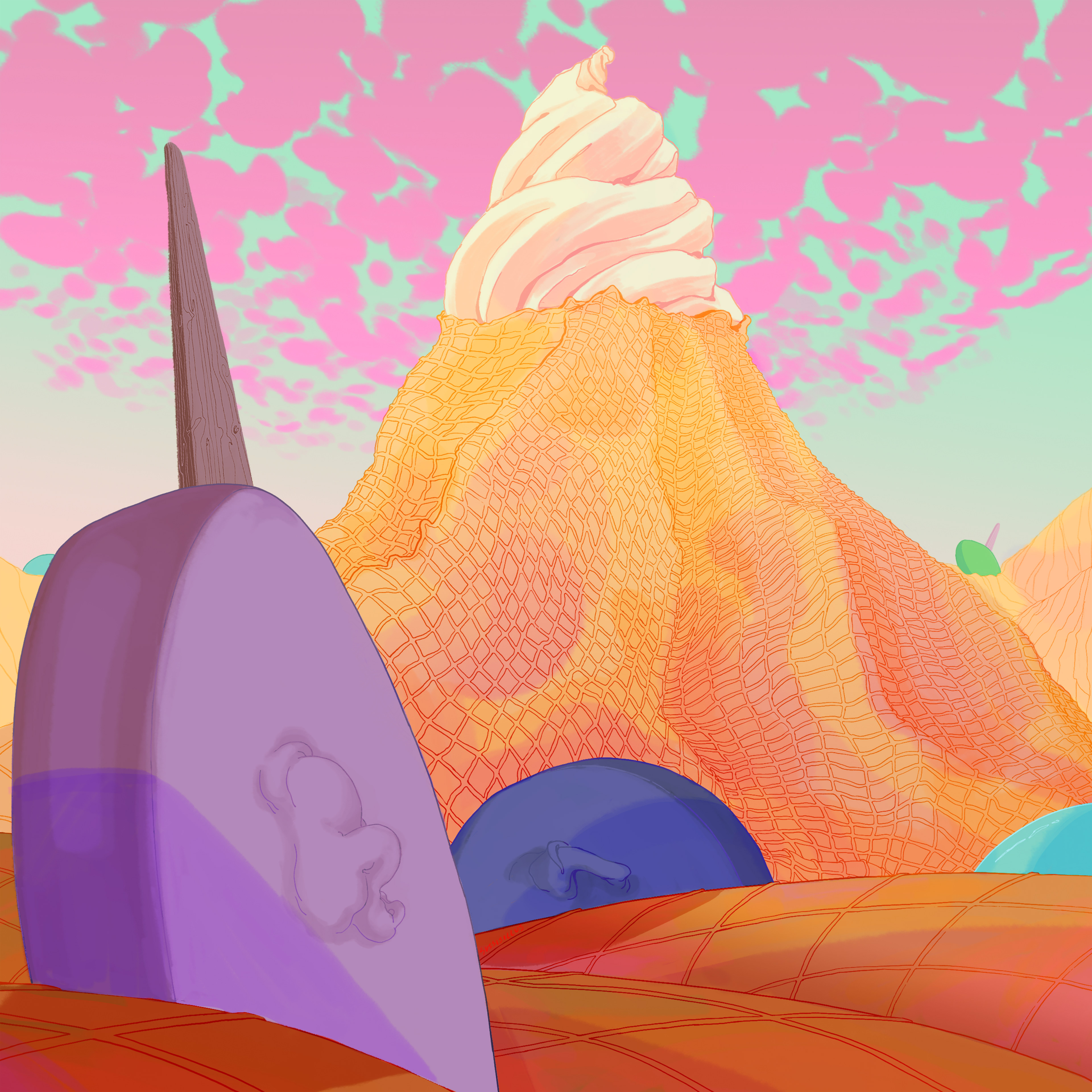 Illustrations for show focusing on Frozen Treats in the summer in fantastical ways.